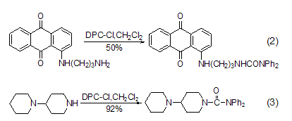 與氨基的反應 dpc-cl易與一級 (式2)[2]、二級脂肪胺 (式3)[3] 等反應[4~7]。